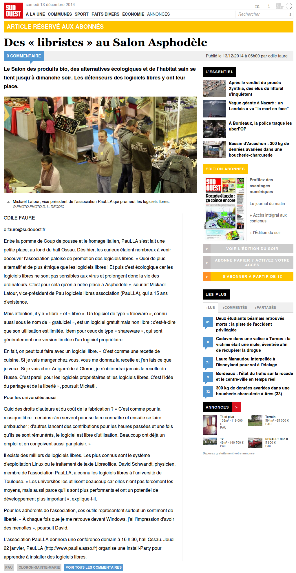 Sud-ouest 13 décembre 2014